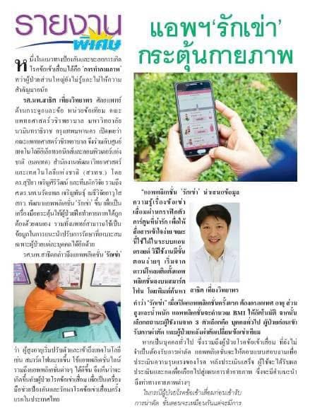 รางวัลผลงานนวัตกรรมดีเด่น แอพพลิเคชั่น”รักเข่า” คิดค้นโดย นพ.สาธิต เที่ยงวิทยาพร